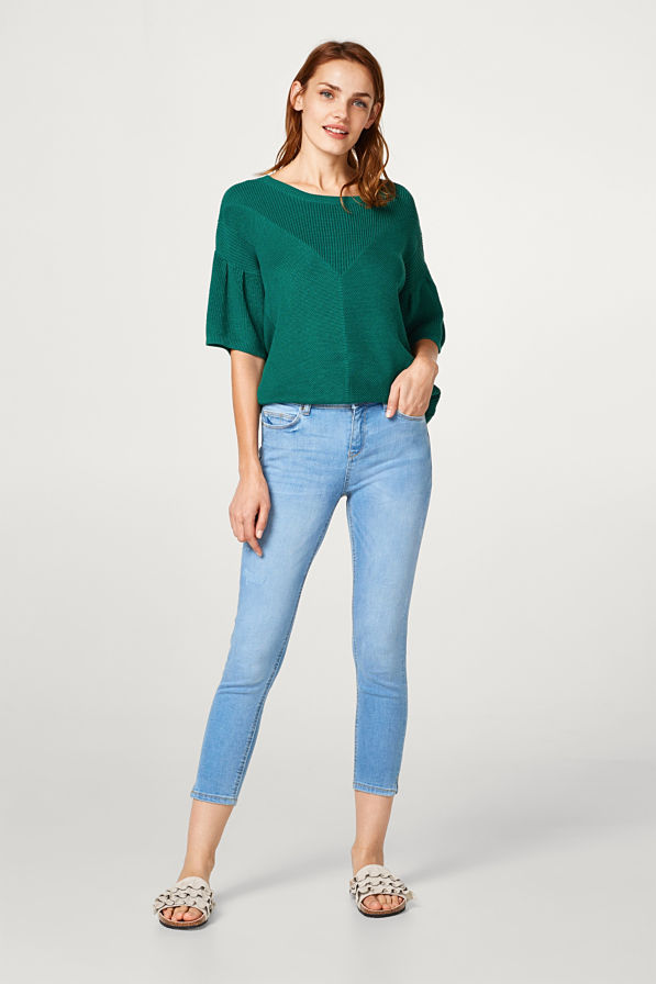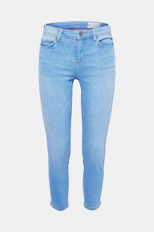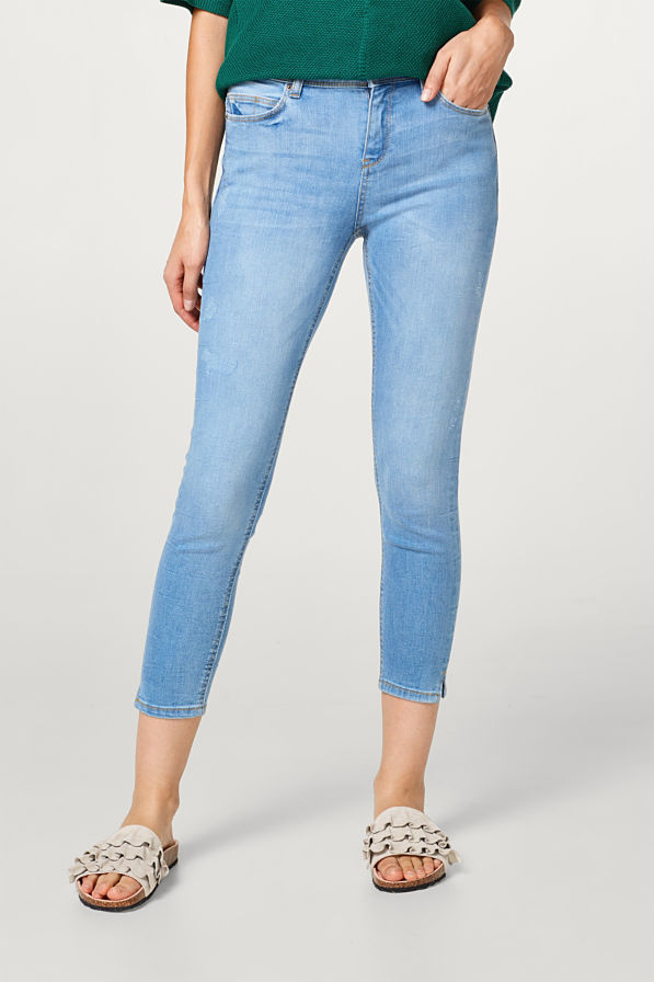 So wird Denim sommerlich: in verkürzter Länge, heller Waschung und mit coolen Used-Effekten! Stretch-Jeans im 6-Pocket-Stil!